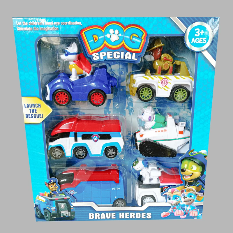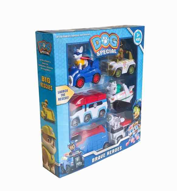 این محصول برگرفته از انیمیشن معروف سگ های نگهبان بوده و یک مجموعه 6 عددی از ماشین به همراه سگ های نگهبان که قابلیت جدا شدن از ماشین ها را دارند و سرهای آنها نیز قابلیت چرخش را دارند که جمعا 10 قطعه شامل اتوبوس ، کامیون ، شخصیت روبوداک و ماشین ، شخصیت معروف و دوست داشتنی اورست و ماشین ، شخصیت جدید و کمیاب تراکر و ماشین و یک شخصیت جدید شنل دار دوست داشتنی و کمیاب دیگر به همراه ماشین در یک جعبه عرضه می گردد. ماشین ها دارای سیستم عقب کش هستند. این بسته 10 عددی مناسب برای کودکان بالای 3 سال و از جنس پلاستیک با کیفیت و قابل شستشو می باشد. سرنشین های ماشین ها 4 شخصیت انیمیشنی حاضر در کارتون سگ های نگهبان بوده و در آن واحد یک ست اسباب بازی سگ های نگهبان متنوع با رنگ های شاد و زیبا در اختیار کودک قرار می گیرد.و کودک می تواند به همراه دوستان خود یک بازی گروهی داشته و به راحتی داستان های مجموعه را بازسازی کند.