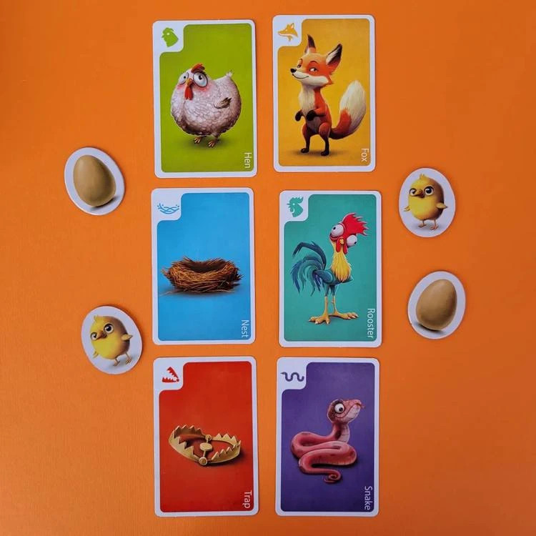 بازی مرغدونی یک بازی بسیار جذاب با قوانین بسیار ساده است که به خوبی به شما کمک میکند بدون دغدغه تصمیمبگیرید و نتایج تصمیمات خود را در یک فضای لذتبخش بررسی کنید. در این بازی باید با رو کردن کارتهای مرغ، خروس و لانه، تخممرغ به دست بیاورید و با ارائهی دو کارتِ مرغ، آن را به جوجه تبدیل کنید. در عین حال باید مراقب روباهها، مارها و تلهها هم باشید. در این بازی نیز مثل زندگی واقعی عامل شانس، یعنی آنچه در کنترل ما نیست، در نتیجهی بازی نقش دارد.
