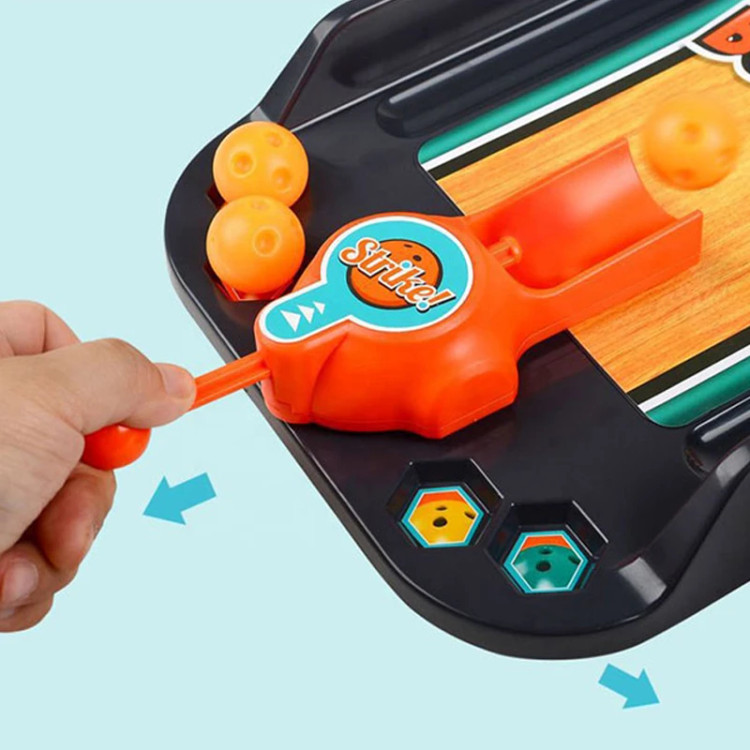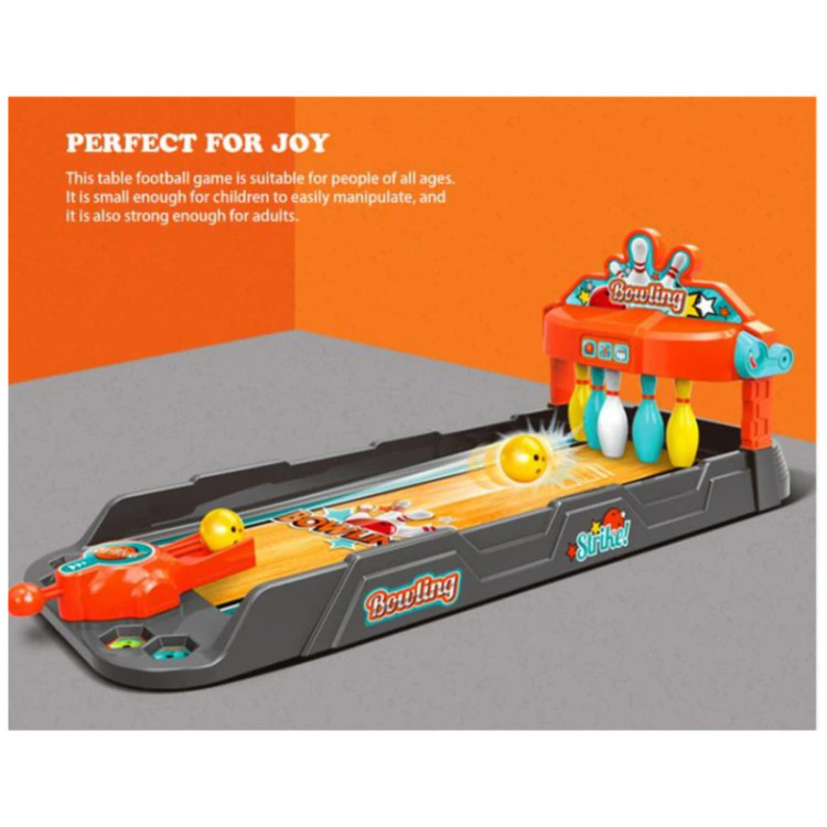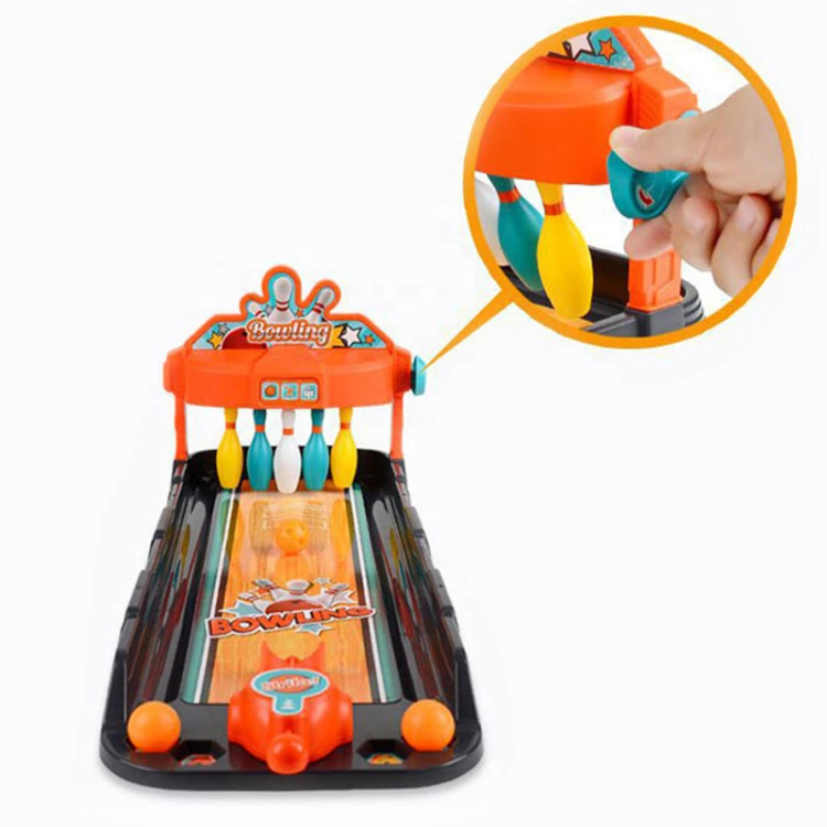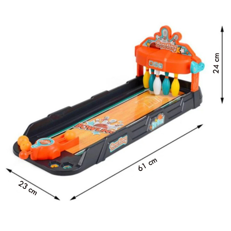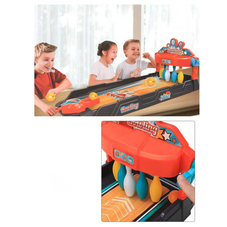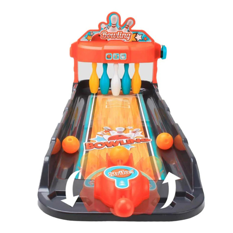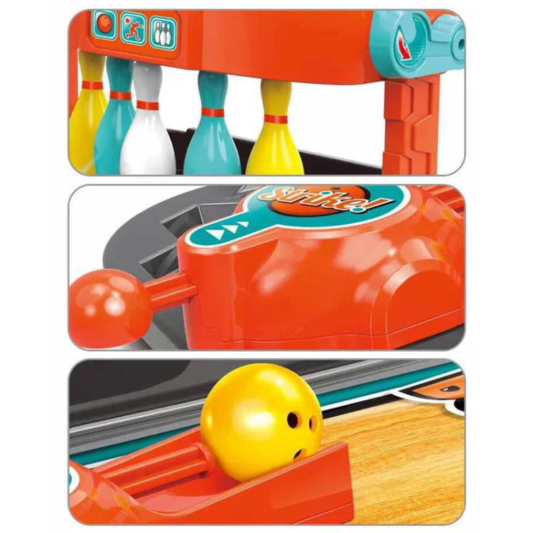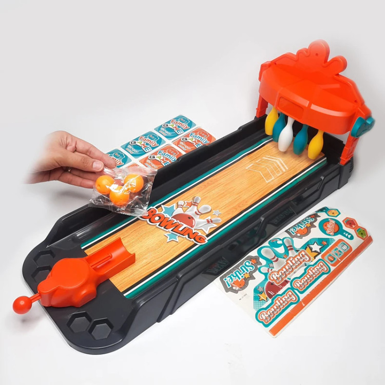 اسباب بازی بولینگ یک اسباببازی مهیج و جذاب مناسب برای کودکان است. این بولینگ دارای یک زمین بازی با قابلیت بالا و پایین آوردن پینهای بولینگ و اهرم شلیک توپ است. درون جعبه محصول علاوه بر زمین بازی بولینگ ، ۵ عدد کارت و ۳ عدد توپ وجود دارد. توپهای این بازی کاملا مشابه با توپ بولینگ واقعی است و کودکان هنگام بازی حس خوبی تجربه خواهند کرد.