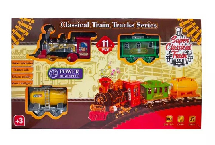 دارای سه عدد واگن با رنگبندی بسیار جذاب است.قابلیت خاص و منحصر به فرد ان داشتن ریل هایی است که کودک میتواند به انتخاب تخیل خود ان هارا چیدمان و ماجرا جویی را شکل دهد.