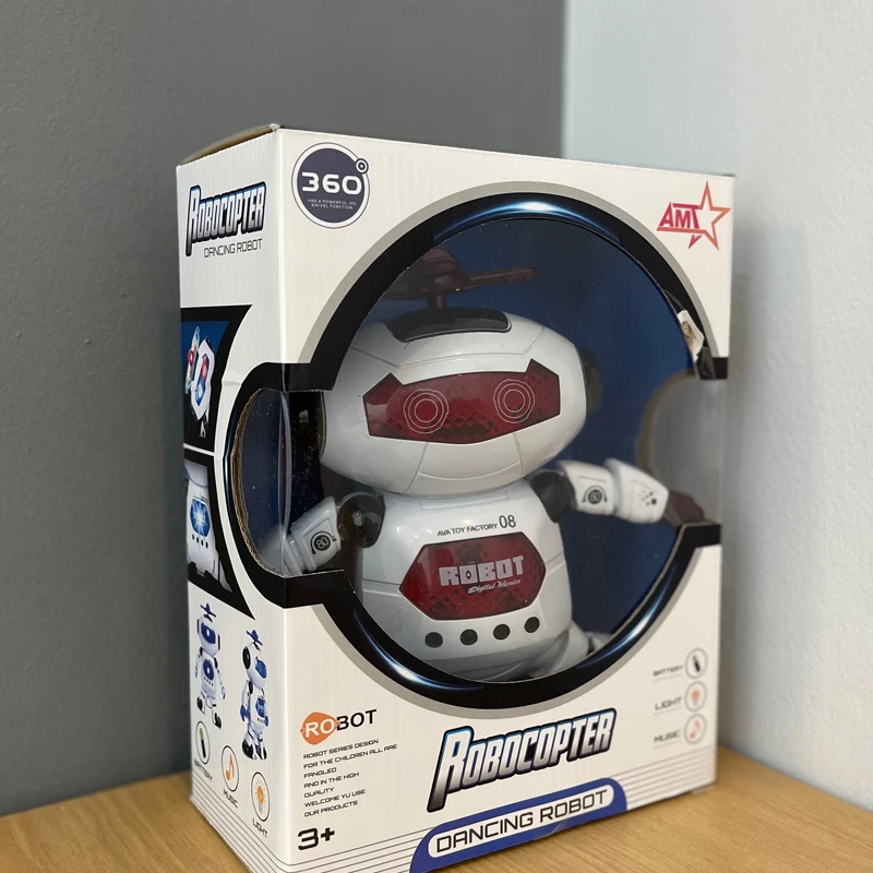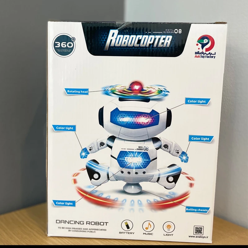 ربات موزیکال چرخشی رقصنده باتری خور موجود در دو رنگ سفید قرمز و سفید آبی