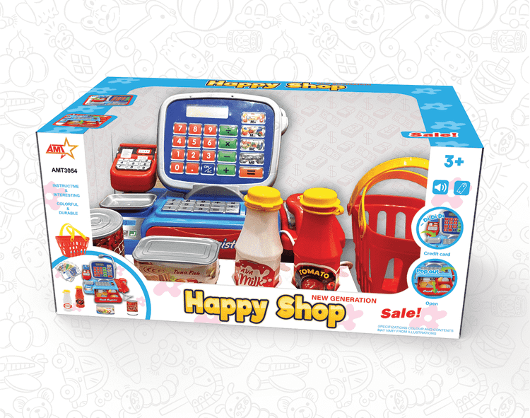 محصول پیش روی شما صندوق فروشگاهی amt بوده که در بسته بندی جعبه ای وارد بازار شده است. تعداد قطعات این محصول به +10 رسیده که همه آنها پلاستیکی بوده و با کیفیت تولید شده اند.ابزار و وسایل موجود در کنار این صندوق شامل : رب گوجه ، شیر، تن ماهی، سس گوجه فرنگی، سبد خرید، پول های کاغذی و سکه ای و دستگاه بارکد خوان میباشد.