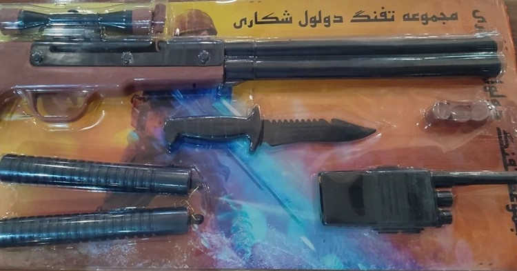 یک عدد تفنگ دو لول همراه با بی سیم، نانچیکو، نارنجک، چاقو