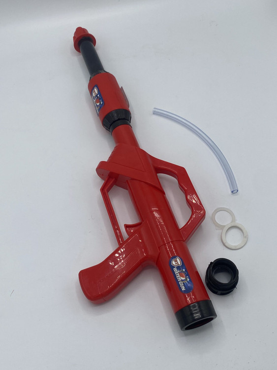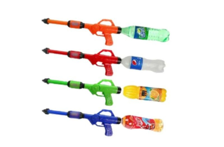 تفنگ آبپاش حاضر یک از جالب ترین و پر طرفدارترین تفنگ های آب پاش می باشد، این مدل که به مدل نوشابه ای یا بطری خور معروف است، در واقع مخزن نداشته و شما می توانید آن را به انواع بطری آب یا نوشابه در حجم های مختلف متصل نموده و بازی نمایید. در انتهای این تفنگ، محل مخصوصی برای پیچ کردن وجود دارد، در داخل بسته نیز یک سری مخصوص و دو عدد واشر برای ضد نشت کردن موجود است، بطری آب را بسته و از بازی با تفنگ لذت ببرید. عملکرد این تفنگ آب پاش ماشه ای نیست، بلکه به صورت پمپی عمل می نماید به این صورت که محل مخصوص در قسمت لوله را به عقب و جلو برده و حجم بسیار زیادی از آب را با شتاب بالا به بیرون بپاشید.