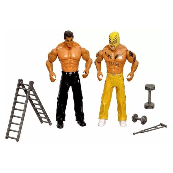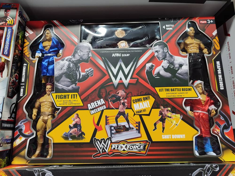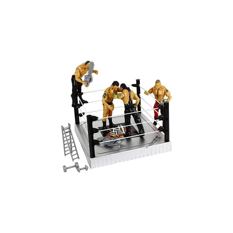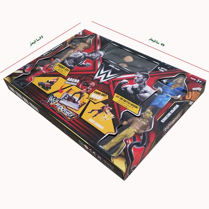 این مجموعه از جنس پلاستیک و کش درجه یک ساخته شده و شامل 4 شخصیت یا فیگور محبوب کشتی کج ،کلی لوازم و اکسسوری مثل نردبام ، صندلی فلزی ، کمربند قهرمانی و …. میباشد